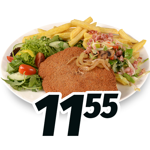 | Heerlijke knapperige schnitzel met frites en frisse salade |
